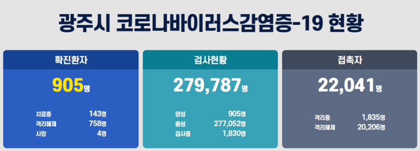 12월 22일 광주광역시 코로나 상황입니다. 어제 21일 지역 감염자는 총 26명에 사망자 1명이 발생하였습니다. 현재 신규 감염자가 18명 추가되었습니다. 더 자세한 사항은 아래를 확인하세요.
