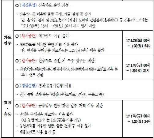 마찬가지로 현금서비스인 단기 카드대출 이용도 해당 점검 시간에는 거래가 제한됩니다. 단 비씨카드로 현금 VAN사는 이용이 가능합니다.