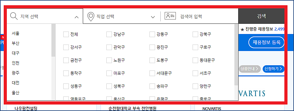 구인구직 사이트로 가장 기본이 되는 조회는 직종, 고용형태 및 근무지역, 그리고 학력 등을 선택해서 검색할 수 있습니다. 또한 직접 검색어를 입력해 검색하는 것도 가능합니다.