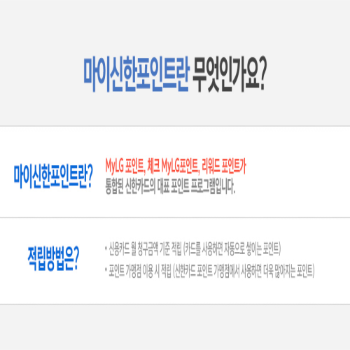 마이신한 포인트는 제휴 가맹점에서 적립하고 현금처럼 사용할 수 있지만 포인트 범위 내에서 사용할 수 있지만 포인트 사용 시 카드와 가족 카드 모두 사용할 수 있습니다. 포인트는 신용카드 사용에 저장됩니다.