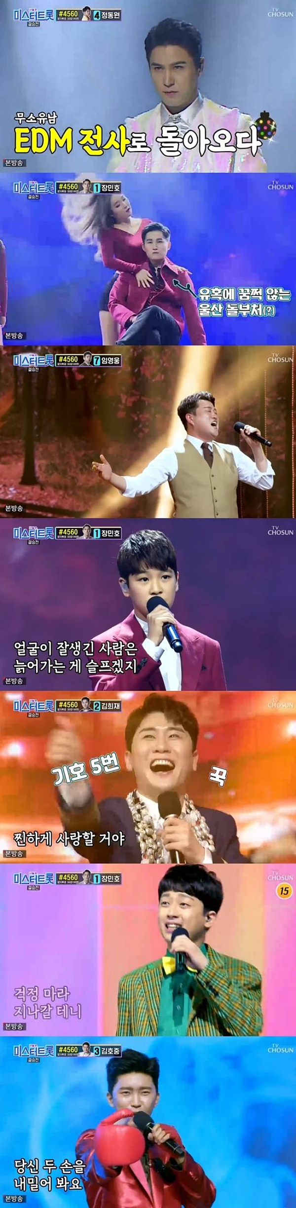 대국민 응원 투표로는 1위 이찬원, 2위는 17점 차로 임영웅, 3위 영탁, 4위 정동원, 5위 김호중, 6위 김희재, 7위 장민호입니다.