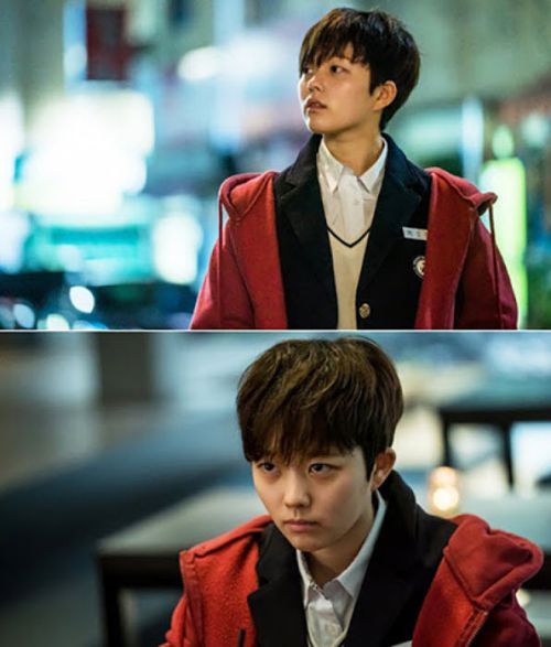 특히 이 씬은 대 선배의 목을 조르며 분노의 감정을 폭발시키는 씬으로 촬연 전부터 리허설, 카메라 동선, 목을 잡는 손 포즈까지 꼼꼼하게 체크하며 완성된 명장면입니다. 이 컷 하나로 기생충의 발칙한 여고생의 캐릭터를 지우고 완벽히 저주의 힘을 가진 10대 소녀 방법사로 탈바꿈했습니다.