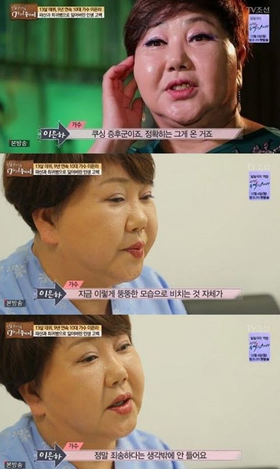 이은하는 지난해 다른 방송에서 쿠싱증후군을 앓고 있다고 처음 밝혀 안타까움을 자아냈습니다. 그 당시 그녀의 모습은 과거와는 전혀 다른 모습이었습니다.