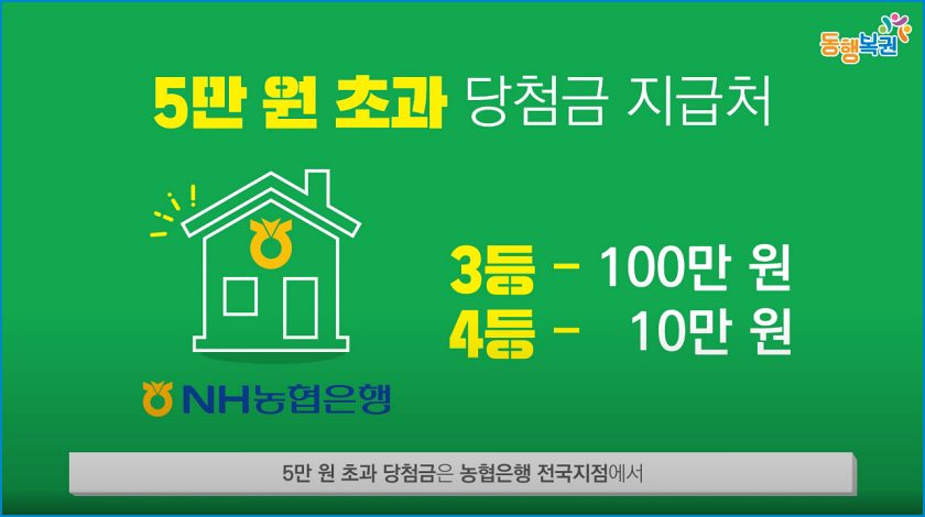 4등 10만 원 그리고 3등 100만 원은 농협은행 전국 지접에서 수령 가능합니다.