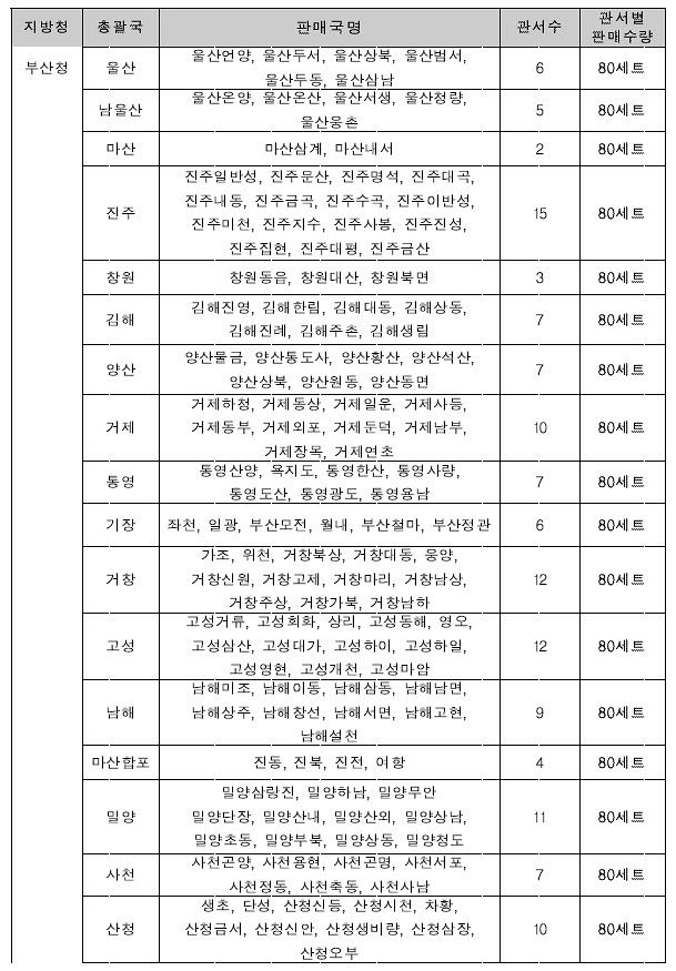 - 판매 시각 - 오전 11시. 단 제주 17:00 도서지역은 도착 상황에 따라 판매. 오후만 근무하는 시간제 우체국은 14:00