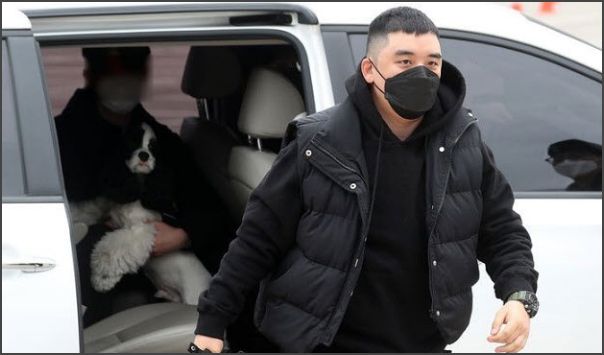 지난 9일 승리는 강원도 철원 6사단 신병교육대로 입소했습니다. 그날 그는 검은색 마스크에 취재진에 인사만 한체 입대를 했는데요. 당시 취재진에 찍힌 사진이 이런 추측의 발단입니다.