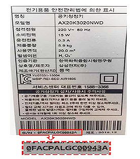 제품 일련번호(제조번호) 입력과 제조번호가 포함된 명판사진 업로드