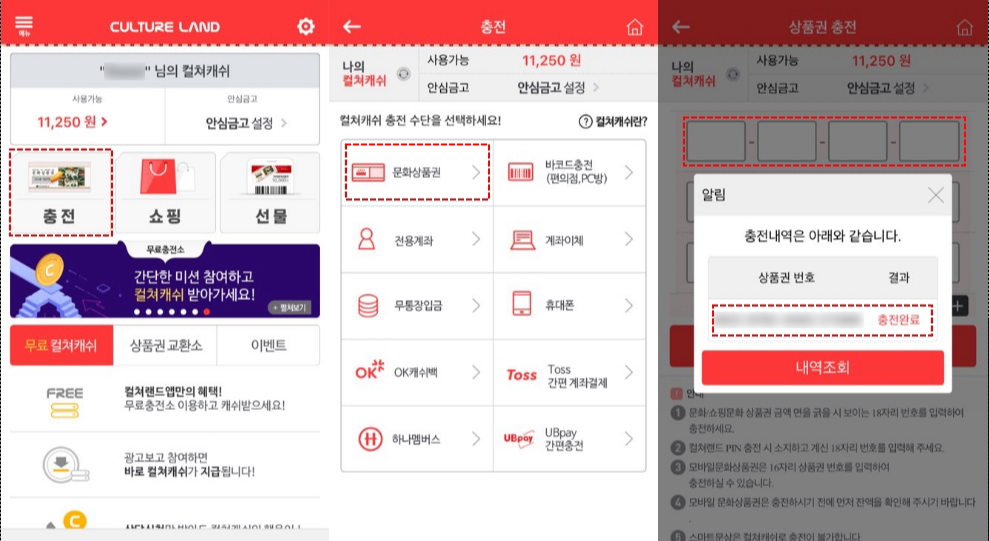 단, 상품권으로 충천한 컬쳐캐쉬는 현금 환불이 불가능합니다.