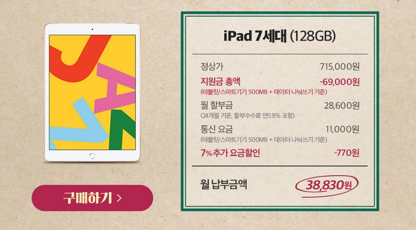 '태블릿, 스마트기기 500MB 나눠 쓰기' 요금제를 선택하여 휴대폰을 구매하면 공시지원 및 추가 지원금 약 42만 원과 통신 비용 7% 추가 할인 혜택을 받습니다. 만약 이 요금제로 갤럭시탭 S4 태블릿을 구매하면 공시 지원금 플러스 추가 지원금 46만 원과 7% 통신 할인 혜택을 받아 월 3만 8000원대로 이용할 수 있습니다.