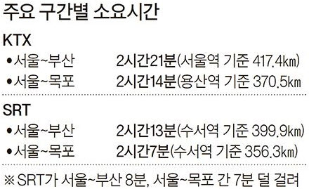 SRT 요금은 KTX보다 저렴합니다. 확정된 요금표에 따르면 서울 부산은 12% 저렴합니다. 특히 수서, 천안아산 구간은 20%나 저렴합니다. 거기에 소요시간도 서울 부산 8분, 서울 목포 7분 정도 더 빠릅니다.